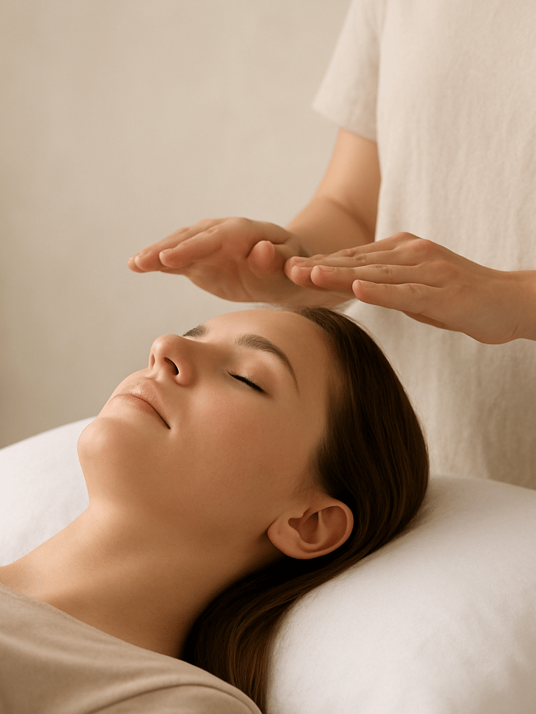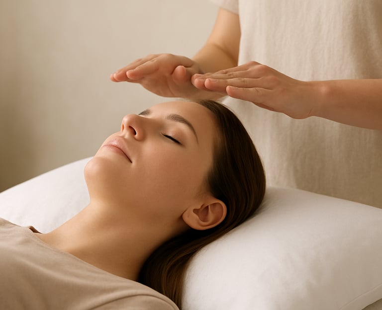 Reiki is a gentle, non-invasive healing practice where you relax comfortably while I place my hands on or just above your body, adjusting everything to whatever feels most comfortable to you.